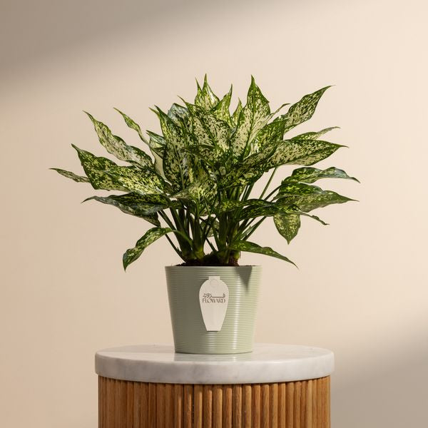 Add a touch of natural elegance to any space with the Aglaonema White Dalmatian, a stunning Chinese evergreen known for its unique variegated leaves and air-purifying qualities. With its speckled white and green foliage, this plant brings a sense of calm and freshness to homes or offices alike. It’s low-maintenance, thrives in indirect light, and adds lasting beauty year-round. Planted in a stylish light green pot, it complements modern and classic décor effortlessly, making it a thoughtful gift or a chic addition to your own space , Order now and bring home a plant that combines easy care with graceful charm—perfect for brightening any corner with natural beauty.